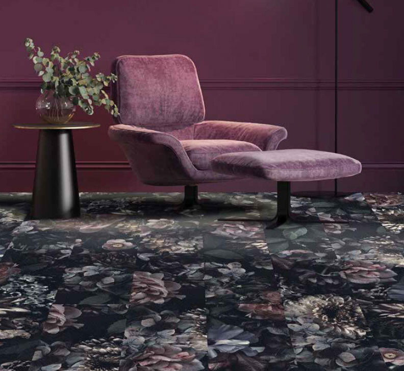 The Plank CREATIONS tile collection offers maximum flexibility. In addition to the almost unlimited design possibilities, carpet planks have numerous practical advantages. As a flexible floor covering, the 25 × 100 cm planks are particularly suitable for use in commercial buildings and combine all the positive properties of a carpet in terms of acoustics, underfoot comfort and room climate. Partial repair or replacement of individual planks is quick and easy. The Plank CREATIONS collection offers a wide range of design variants that can be used to create a unique ambience in any room. Interesting metal structures, colourful explosions of colour, varied textile designs, floral patterns, wild animal skins or natural stone and wood structures - this collection can be used to create completely new room settings.