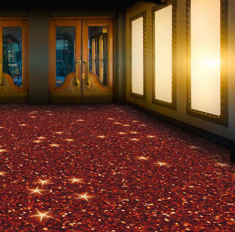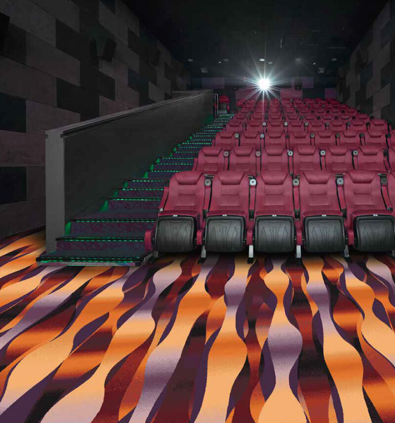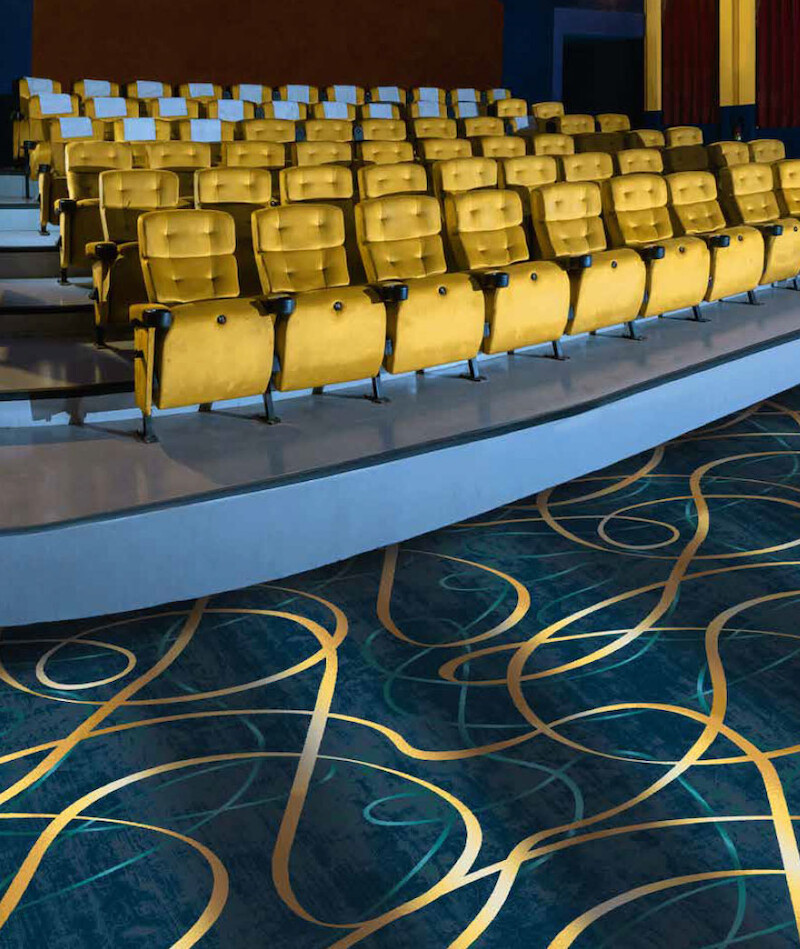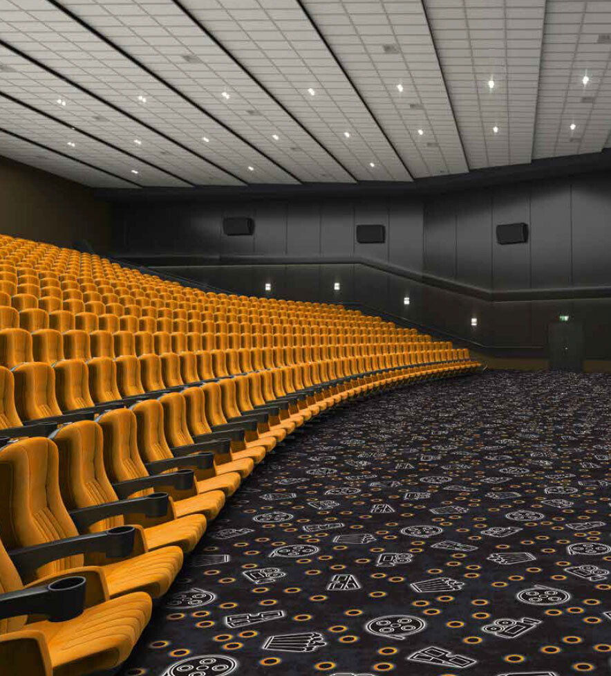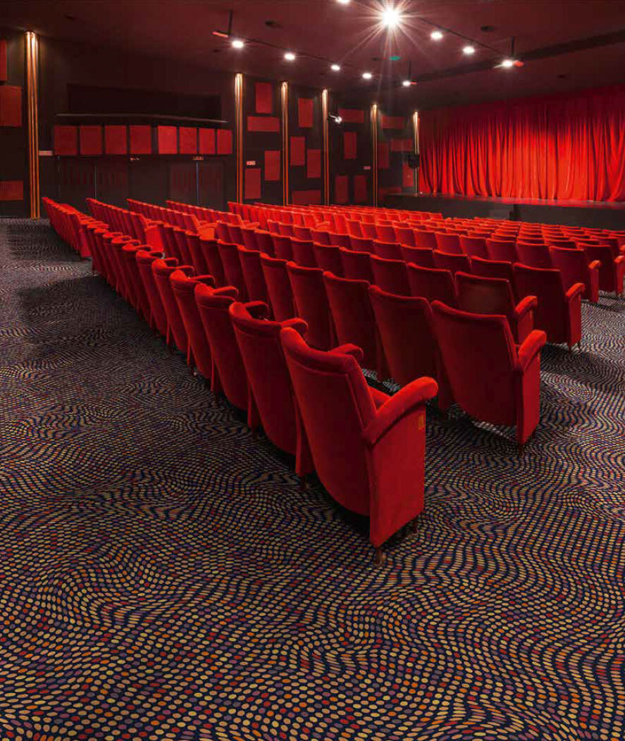 Thanks to the expressive visual power of a carpet, it is possible to create an ambience that underscores the special nature of a visit to the cinema or theatre. Innovative, high-quality carpets not only have a visual and tactile impact, but also meet high demands with respect to resilience and ergonomics. They are resistant and durable, improve footfall and room sound levels, and create a warmer feeling in the respective space.