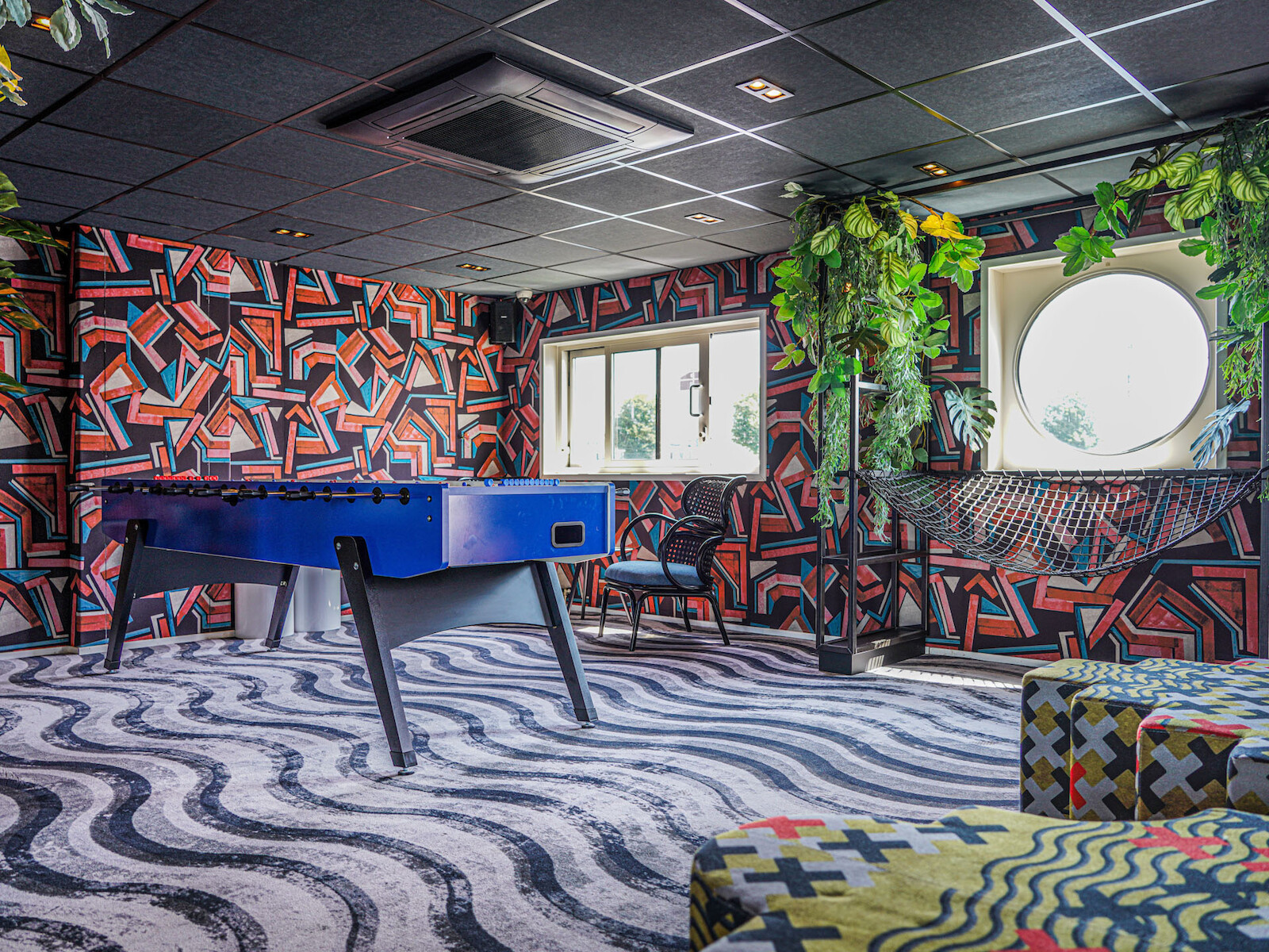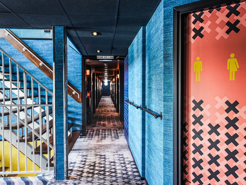 In collaboration with and commissioned by E.S.T.I.D.A, who are responsible for the design, concept, and realization of this project, Hotel Botel in Amsterdam. Print-on-print elements were used to create an interior that feels exciting, vibrant, and contemporary.