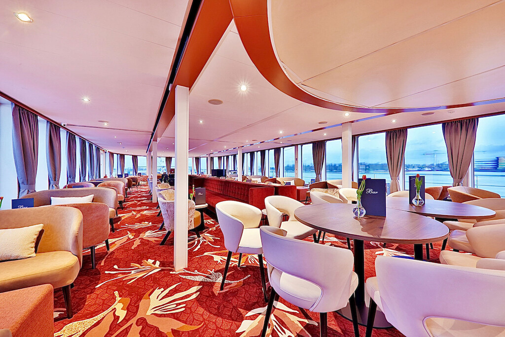 Für den Restaurantbereich wählte Marloes ein ausdrucksstarkes Dessin, das die warme Atmosphäre unterstreicht und eine luxuriöse Stimmung schafft – ganz im Einklang mit dem exklusiven Gästeerlebnis an Bord.